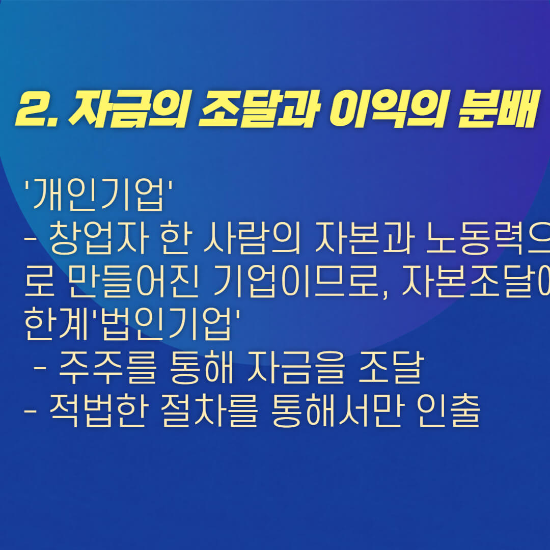 '법인기업'은 주주를 통해 자금을 조달하므로 대자본 형성이 가능하나, 법인은 주주와 별개로 독자적인 경제주체이므로, 자본금과 기업경영에서 발생한 이익은 적법한 절차를 통해서만 인출할 수 있습니다