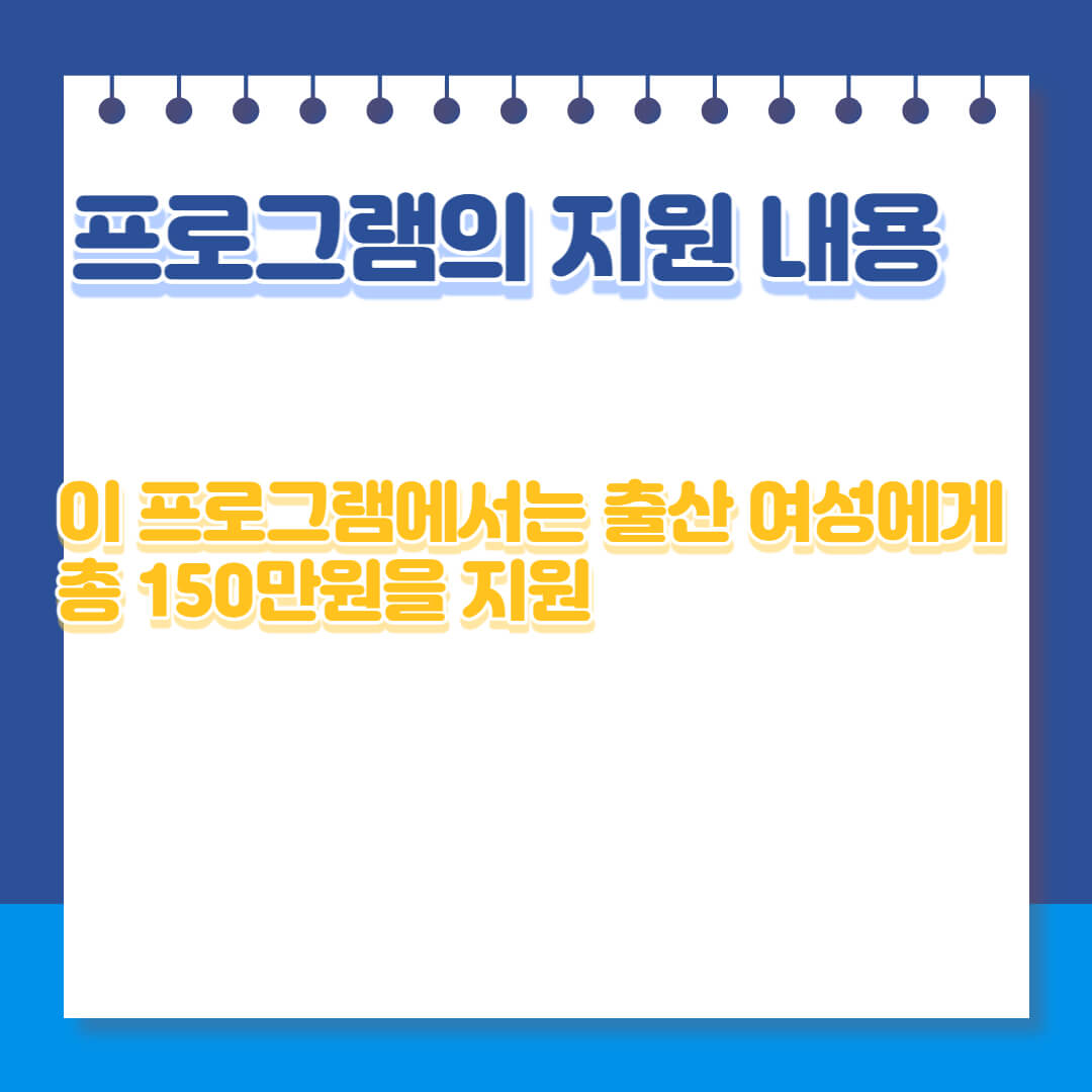 이 프로그램에서는 출산 여성에게 총 150만원을 지원합니다.