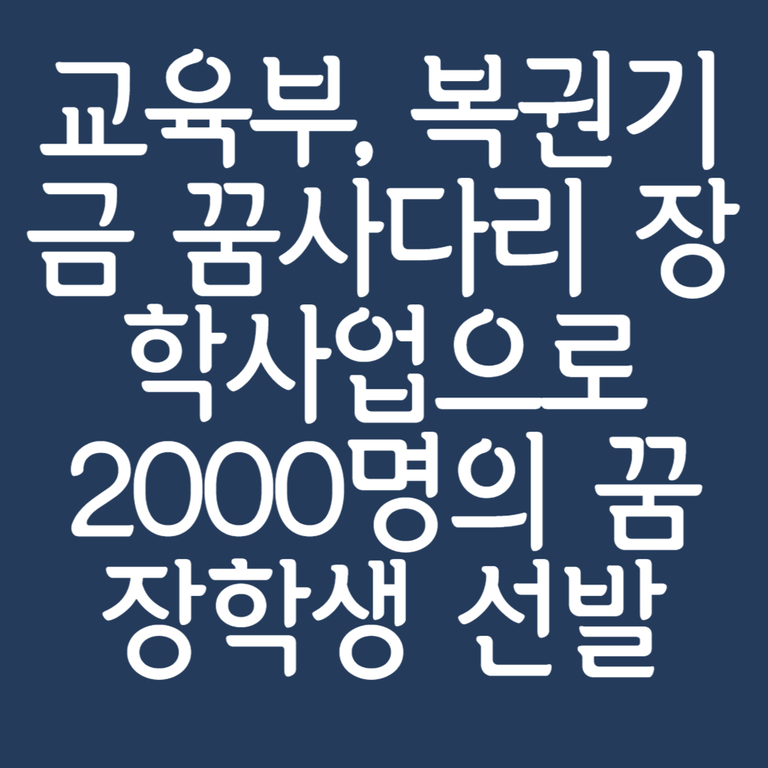 복권기금 꿈사다리 장학사업으로 선발된 2000명의 꿈 장학생들이 안정적으로 성장하고 자립할 수 있도록 교육부가 적극적으로 지원할 계획이라고 합니다. 꿈을 키우고자 하는 취약계층 학생들의 성공적인 미래를 위해 지속적인 노력이 이어지고 있습니다. 궁금한 사항이 있으시다면 교육부 교육복지 돌봄 지원관 교육복지정책과로 문의해 주시기 바랍니다. 앞으로도 학생들의 꿈을 응원하며 지원해 나가는 교육부의 모습에 많은 기대 부탁드립니다.