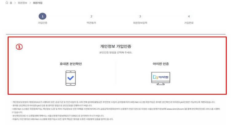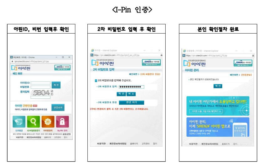 본인인증은 휴대폰 본인인증 또는 I-PIN 인증을 통해 진행됩니다. 본인인증 방법을 선택한 후, 본인인증 절차를 진행 하십시오.