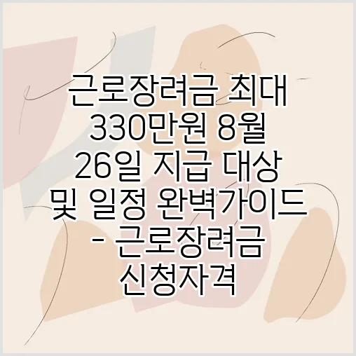 안녕하세요! 2025년 여름, 뜨거운 햇살만큼이나 많은 분들의 기대를 한 몸에 받고 있는 소식이 있죠. 바로 국가에서 제공하는 든든한 지원, 근로장려금 지급 소식입니다. 특히 8월 26일부터 순차적으로 최대 330만 원까지 지급된다는 반가운 소식에 많은 분들이 과연 나도 근로장려금 신청자격에 해당될지, 근로장려금 신청은 어떻게 했었는지, 그리고 가장 중요한 근로장려금 지급일은 언제인지 궁금해하실 겁니다. 이 글은 여러분의 모든 궁금증을 명쾌하게 해소해 드릴 완벽 가이드가 될 것입니다. 바쁜 일상 속에서 잠시 멈춰 서서, 나에게 해당되는 소중한 혜택을 놓치지 않도록 지금부터 저와 함께 꼼꼼히 살펴보시죠.