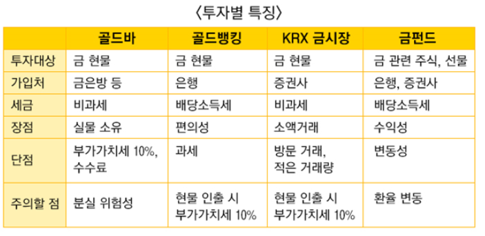금통장은 금펀드와 비슷하고 매매차익에 대한 배당소득세, 부가세가 붙지 않은 장점을 가지고 있습니다. 은행에서 금통장을 개설하는 방식으로 금 통장에 예금을 할 시에는 금액만큼을 금으로 환산해 줍니다. 매매가격은 매일 국제 시세에 은행수수료, 수입비용 약 1% 등을 더해 결정됩니다. 단점으로는 달러 가치가 하락되면 원금에 손실이 있습니다.