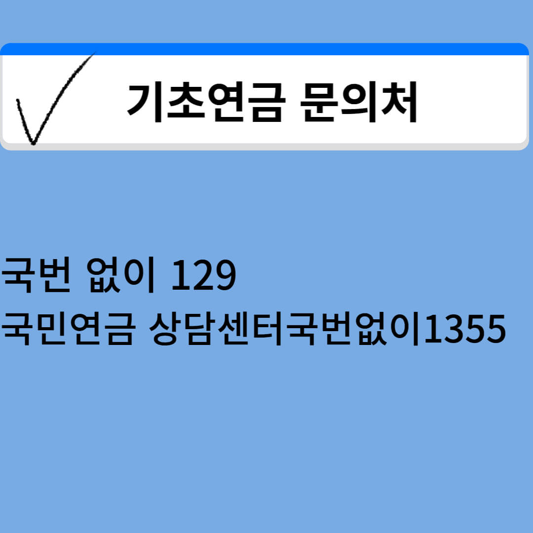 기초연금과 관련해서 궁금한 사항이 있다면 보건복지부 상담센터(국번 없이( 129) 또는 국민연금 상담센터(국번 없이( 1355)로 문의하여 주시기 바랍니다. 전문 상담원들이 친절하게 안내해 드릴 것입니다.