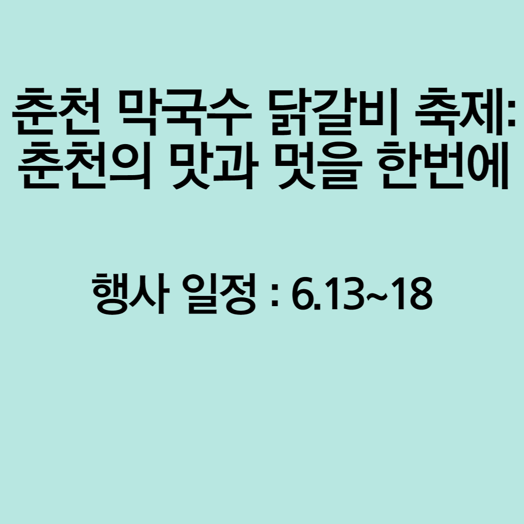 특히, 매일 오후 2시부터는 닭갈비 요리 경연대회, 막국수 먹기 대회, 즉석 드로잉 대회 등 다양한 이벤트가 준비되어 있습니다. 맛있는 음식과 함께 즐거운 체험을 할 수 있는 이 축제는 방문객들에게 즐거운 시간을 선사하게 될 것입니다.