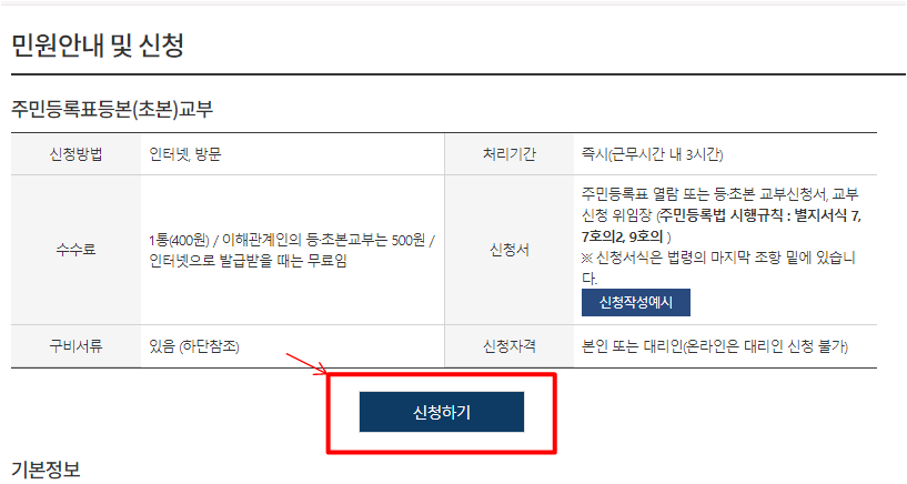 정부24 홈페이지를 들어가셨다면 하단에 자주찾는 서비스에서 주민등록등본(초본)을 확인해주시고 클릭해주세요. 주민등록표등본(초본)창을 확인하시면 신청하기를 눌러주시면됩니다. 주민등록등본 인터넷 발급하는 순서와 같으니 어렵지 않습니다.