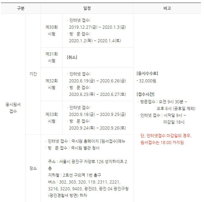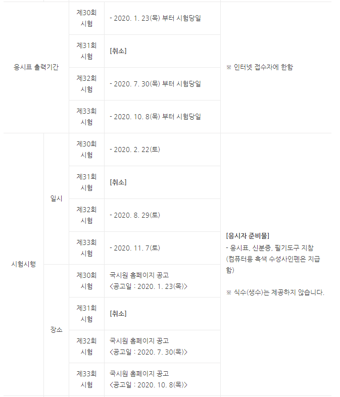 2020년 시험일정