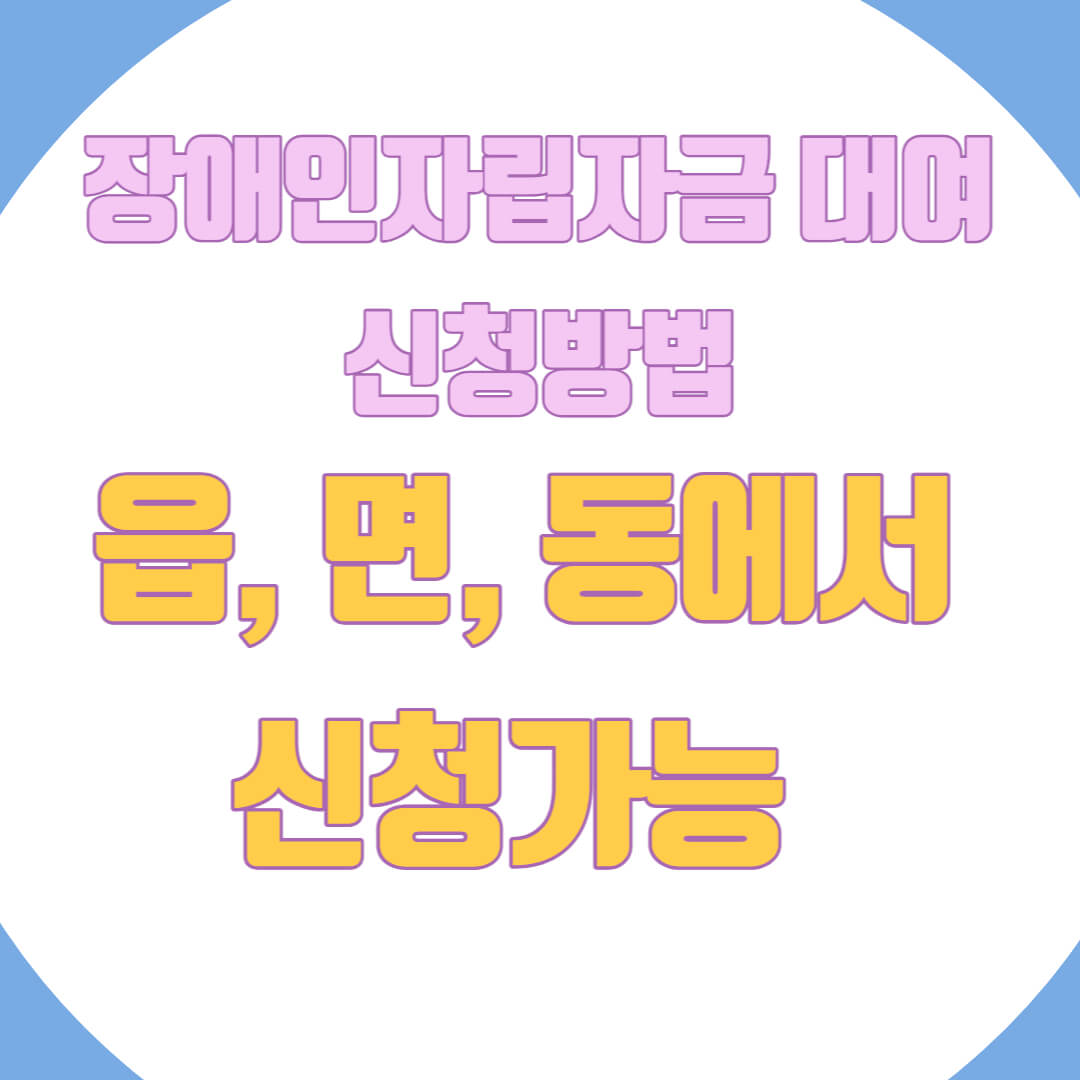 장애인자립자금 대여 신청은 읍, 면, 동에서 진행합니다. 신청 후 요건 심사를 거쳐 자금대여 추천 통지를 받습니다. 추천 통지를 받은 후에는 금융기관(국민은행 전 지점)을 방문하여 대여 결정을 진행하게 됩니다. 금융기관은 여신규정에 따른 여신 심사 후에 최종 대여가 결정되니 이 점 유의하시기 바랍니다. 또한 예산이 소진될 경우 조기에 마감될 수 있으니 이 점도 꼭 참고하시기 바랍니다.