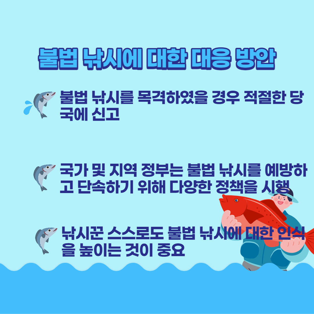 셋째, 낚시꾼 스스로도 불법 낚시에 대한 인식을 높이는 것이 중요합니다. 바르고 안전한 낚시 활동을 위해 불법 낚시에 대한 정보를 충분히 이해하고, 합법적인 낚시 방법을 배우는 것이 필요합니다. 이를 위해 낚시 교육 프로그램이나 워크샵에 참여하는 것을 추천합니다.