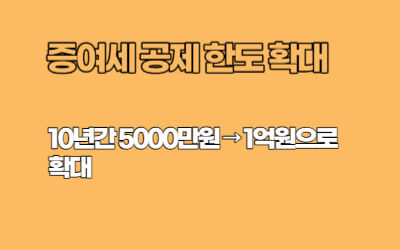 부모님이 자녀에게 주는 결혼 자금에 대한 증여세 공제 한도가 확대됩니다. 기존에는 '10년간 5000만 원'이었던 한도가 결혼자금에 한해서는 1억 원으로 확대됩니다. 이는 증여세 면제의 범위를 확장하는 것으로, 자녀가 결혼 준비를 할 때 부모님의 경제적 지원을 보다 편하게 받을 수 있게 해 줍니다. 만약 자녀에게 10년 내에 5000만 원을 증여한 적이 없다면 최대 1억 5000만 원까지 증여세가 면제될 수 있다는 점에서 큰 장점이 있습니다.