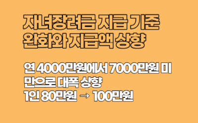 자녀장려금 제도도 변화가 있습니다. 정부는 지급 기준인 부부소득 합산액을 연 4000만원에서 7000만 원 미만으로 대폭 상향하였습니다. 이에 따라 자녀장려금의 수혜 대상이 확대되며, 1인당 최대 지급액도 80만원에서 100만 원으로 인상되었습니다. 이런 변화로 인해, 올해에는 58만 가구에 지급되었던 자녀장려금이 내년에는 104만 가구에게 지급될 예정이며, 그 규모는 총 1조 원에 달할 것으로 예상됩니다.