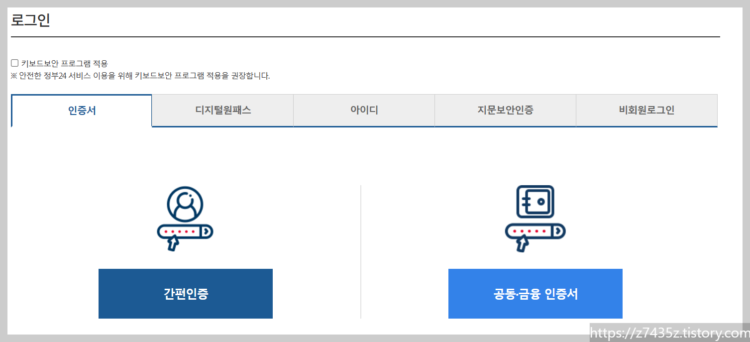 - 간편인증, 공동. 금융 인증서 중 해당되시는 로그인을 합니다.