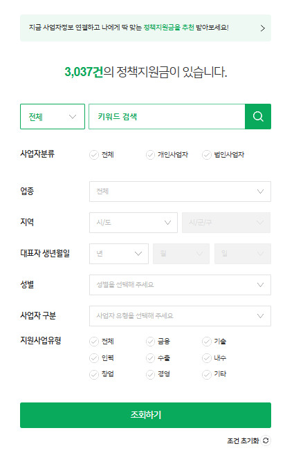 정책지원금을 조회하려면 먼저 사이트에 접속해야 합니다. 사이트에 접속한 후에는 사업자 종류, 업종, 지역, 대표자의 생년월일 및 대표자 정보를 입력하면 자신에게 맞는 정책지원금을 조회할 수 있습니다.