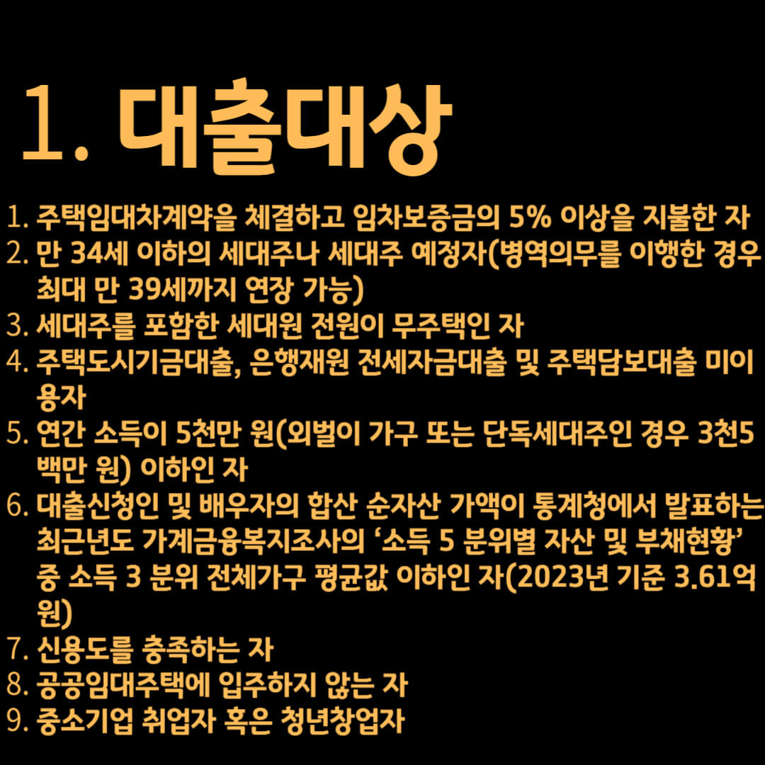 - 만 34세 이하의 세대주나 세대주 예정자(병역의무를 이행한 경우 최대 만 39세까지 연장 가능)
