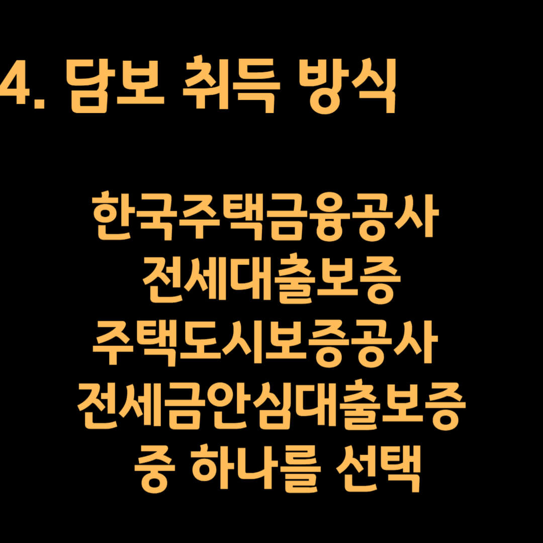 본 대출에서는 한국주택금융공사 전세대출보증과 주택도시보증공사 전세금안심대출보증 중 하나를 선택하여 담보를 취득할 수 있습니다. 이들 보증 방식은 대출금을 지급받는 데 필요한 담보를 제공하며, 대출자가 대출금을 상환하지 못할 경우 대출 기관의 손실을 보호합니다. 이를 통해 중소기업에 근무하거나 청년 창업자들이 안정적으로 대출을 이용할 수 있게 지원하고 있습니다.
