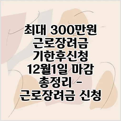 안녕하세요. 혹시나 바쁜 일상 속에서 잠시 잊고 계셨을지 모를 중요한 소식을 전해드리려 합니다. 바로 최대 300만원까지 받을 수 있는 근로장려금 기한후신청2025년 12월 1일로 마감된다는 소식입니다. 이 글을 통해 근로장려금 신청 방법부터 근로장려금 조건 확인, 그리고 가장 궁금해하실 근로장려금 지급일까지, 여러분이 꼭 알아야 할 모든 내용을 제가 친절하고 자세하게 안내해 드릴 예정입니다. 정기 신청 기간을 놓쳐 아쉬운 마음이 드셨더라도 걱정하지 마세요. 아직 희망이 있으니, 저와 함께 차근차근 확인하며 소중한 기회를 놓치지 않도록 준비해 볼까요?