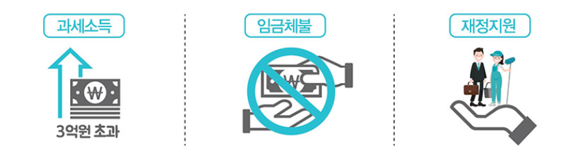 ② 임금체불로 명단이 공개 중인 사업주, 국가 및 공공기관, 국가 등으로부터 인건비를 지원받는 사업주, 최저임금 위반 사업주, 제재부가금 부과 사업주는 제외대상입니다.