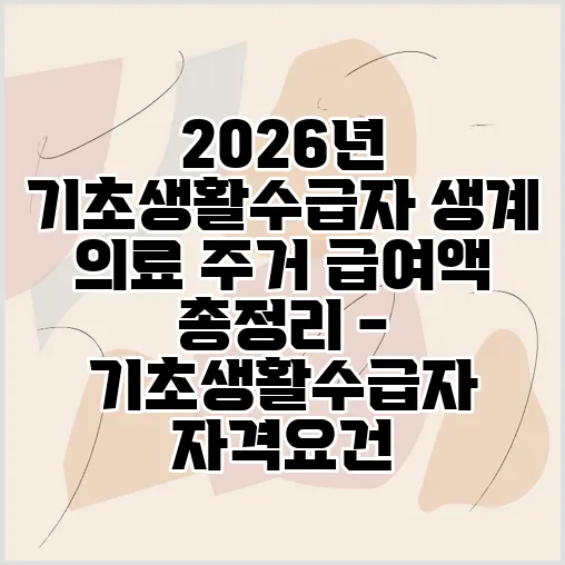 안녕하세요, 여러분! 경제와 복지 정책은 때로는 복잡하고 어렵게 느껴질 수 있지만, 우리 삶에 직접적인 영향을 미치는 만큼 제대로 이해하는 것이 정말 중요합니다. 특히 경제적으로 어려움을 겪는 분들에게는 든든한 버팀목이 되어줄 기초생활수급자 제도가 더욱 그렇습니다. 오늘은 2026년 새롭게 적용될 기초생활수급자 생계 의료 주거 급여액의 모든 것을 친절하고 자세하게 설명해 드릴 예정입니다. 많은 분들이 궁금해하시는 기초생활수급자 자격요건부터 기초생활수급자 신청 방법, 그리고 가장 핵심적인 기초생활수급자 생계급여를 포함한 각 급여액의 상세 내용까지, 궁금증을 시원하게 해결해 드리겠습니다. 복지 혜택은 아는 만큼 받을 수 있다는 사실, 이제 저와 함께 차근차근 알아보면서 2026년에는 여러분의 삶이 조금 더 여유로워질 수 있도록 함께 노력해 볼까요?